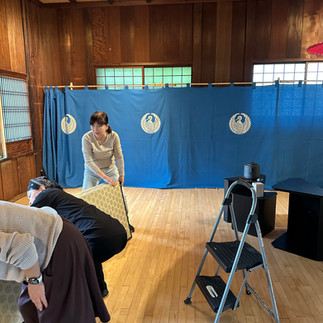 このお茶会が無事に開けるまでには、実に多くの裏方の力が支えとなっております。Tokotoko社中のメンバーは、前日にはまるで大工さんやハンディマン、そして小学校のお掃除時間のように働きづめでした。最後には、ご褒美のランチタイムを楽しみ、明日に向けて「えいえいおー!」と気持ちをひとつにいたしました。
